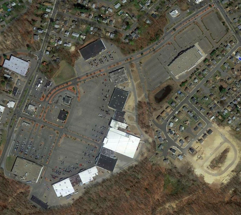 A 1967 aerial view showed that the west end of the Springfield Airport property had been redeveloped as the Springfield Plaza shopping center,