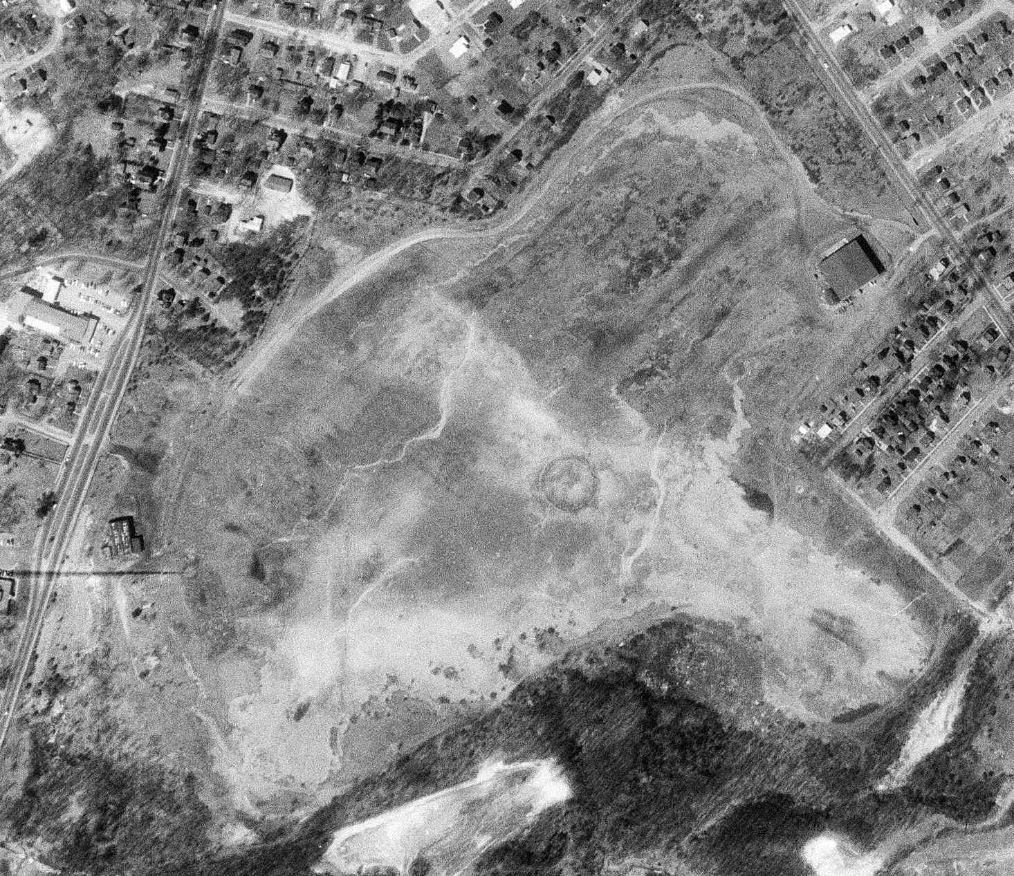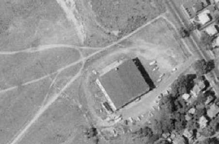 A 1971 aerial view showed the former Springfield Airport hangar which remained standing on the east side of the field.