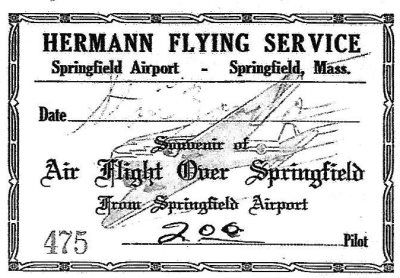 A Hermann Flying Service certificate commemorating a September 1942 flight from Springfield Airport (courtesy of Terri Colelli).