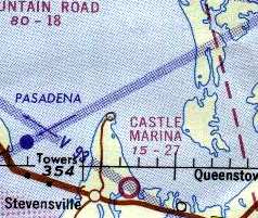 It depicted Horn Point Aerodrome as having 3 grass runways, with a few small buildings on the west side.