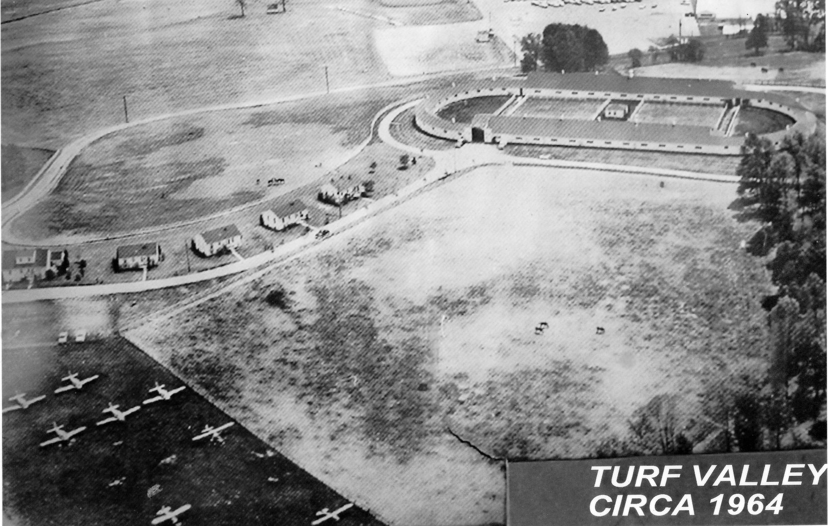 A 1963 aerial view depicted the Turf Valley Airport as a single unpaved northeast/southwest runway.