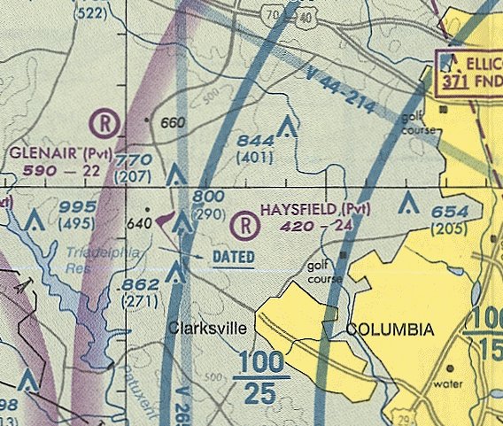which depicted Turf Valley as having a 1,950' unpaved Runway 8/26, with 3 small buildings on the northeast side.