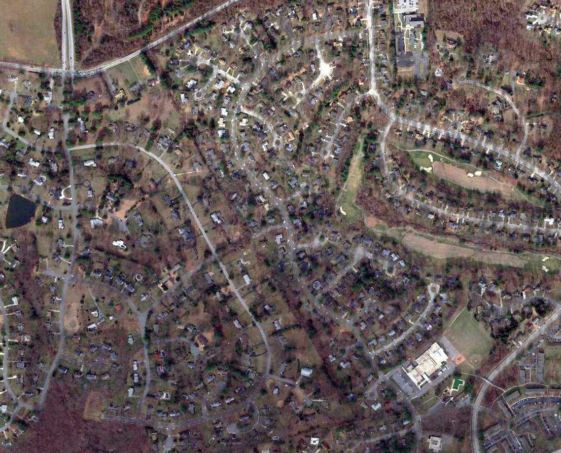 A 2017 aerial view showed Resort Road had been built over the site of Turf Valley Airport, erasing the last trace of this vestige of Howard County aviation.