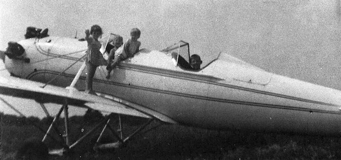 A July 1959 photo of kids playing in a Ryan PT-22 Recruit at Bassler Airfield (courtesy of David Suter).