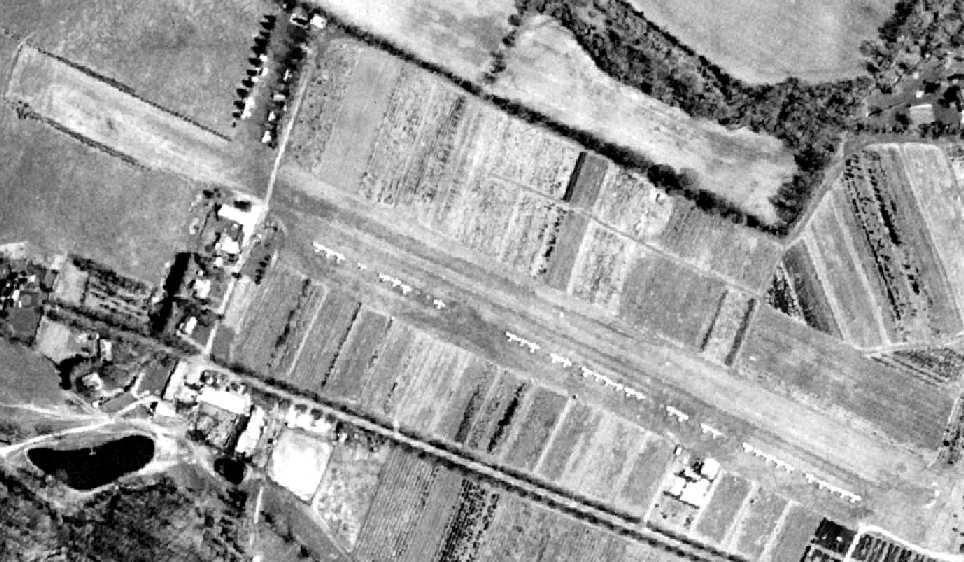 The earliest photo which has been located showing the Turf Valley Airport was a 1963 aerial photo looking west (courtesy of Tina Kloss).