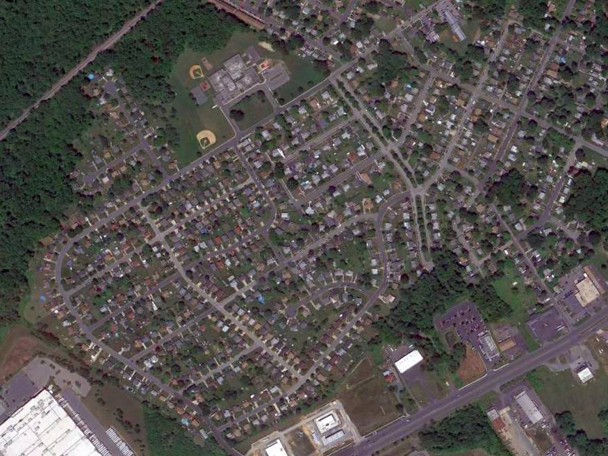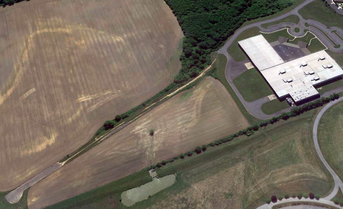 A 2013 aerial view looking southeast at the site of the original Cecil County Airpark showed a building covering the southern portion,