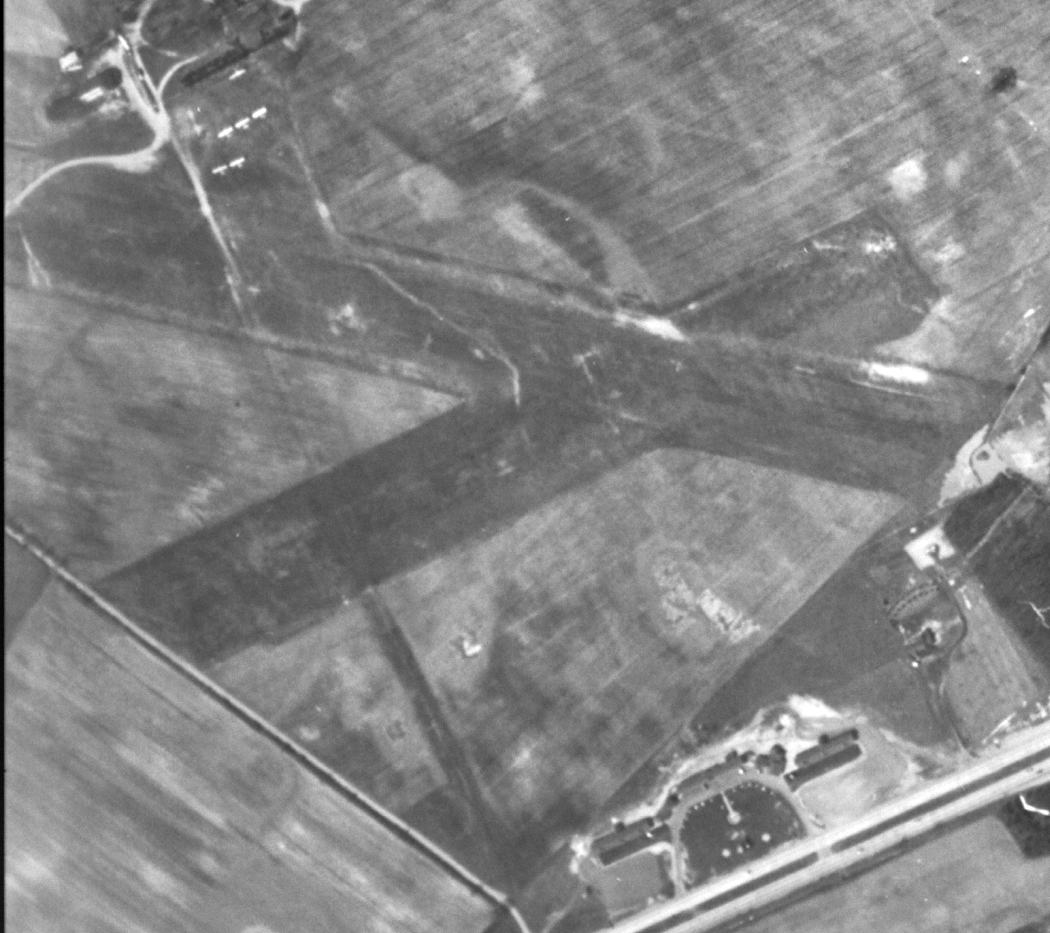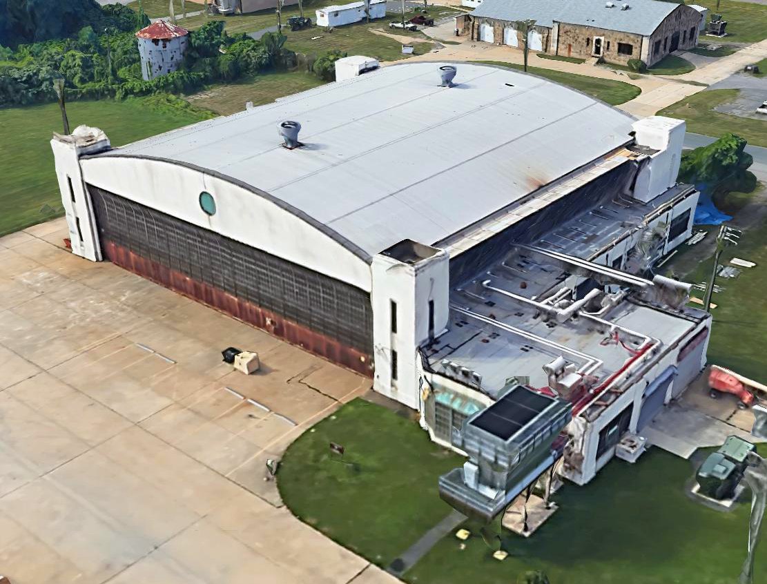 as well as the hangar which remains standing at the south side of the field.