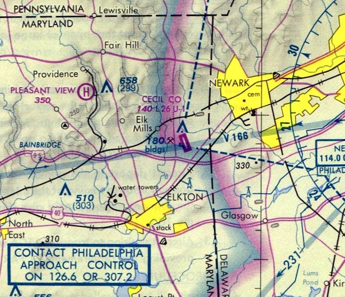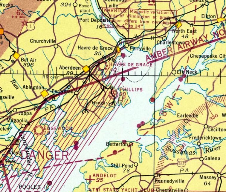 The last aeronautical chart depiction which has been located of the original Cecil County Airport