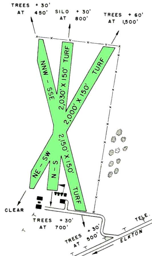 The 1968 Flight Guide (courtesy of Robert Levittan) depicted Cecil County Airport as having 3 turf runways (the longest being 2,150' Runway 16/34).