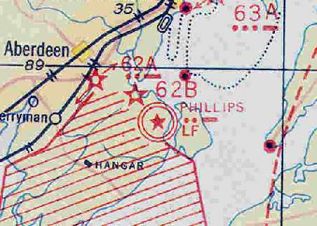 depicted the original Phillips Field. along with the nearby Site 62A & 62B Airway Beacons.