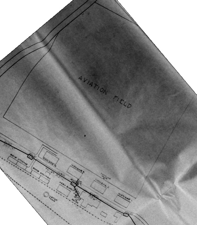 A 1932 map shows the hangars & other structures south of the Phillips “Aviation Field” (from NARA Philadelphia, courtesy of Ron Plante).