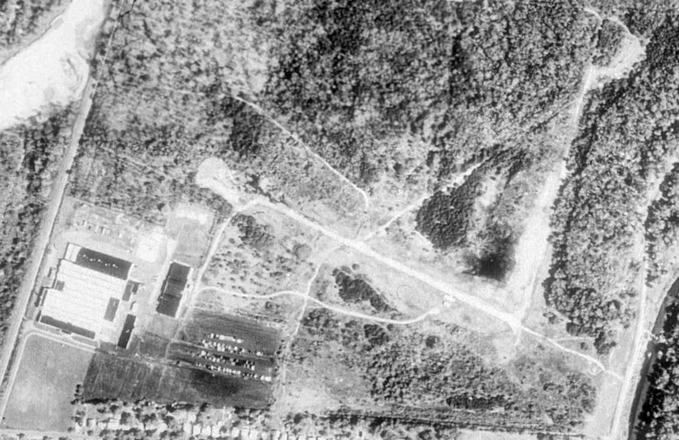 By the time of this 1989 USGS aerial view, the paved runways at ERCO Field had deteriorated, with trees starting to encroach around them.