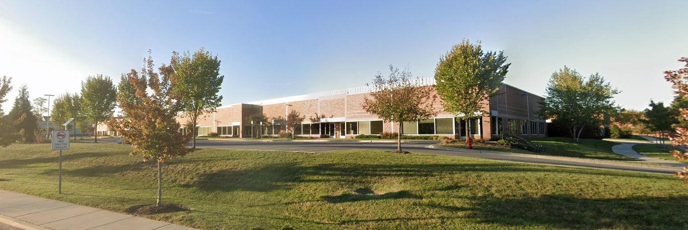 A 2024 photo looking northwest at the Erco factory site, occupied by an innocuous office building.