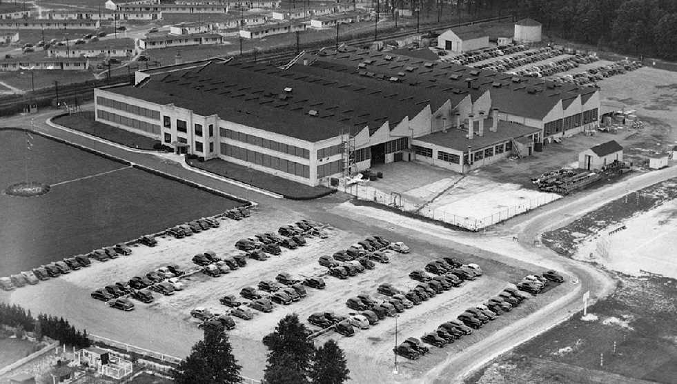 The area behind the factory was previously the location of the runways of ERCO Field,