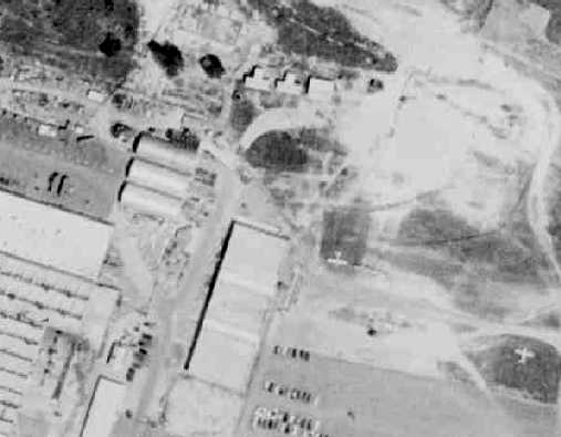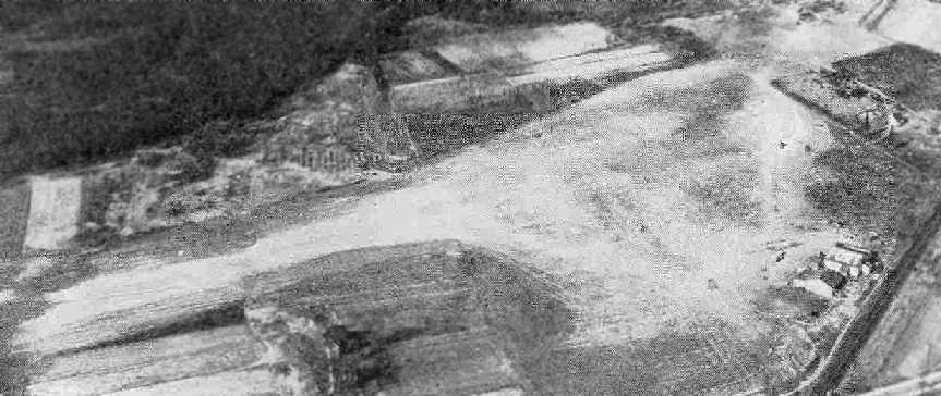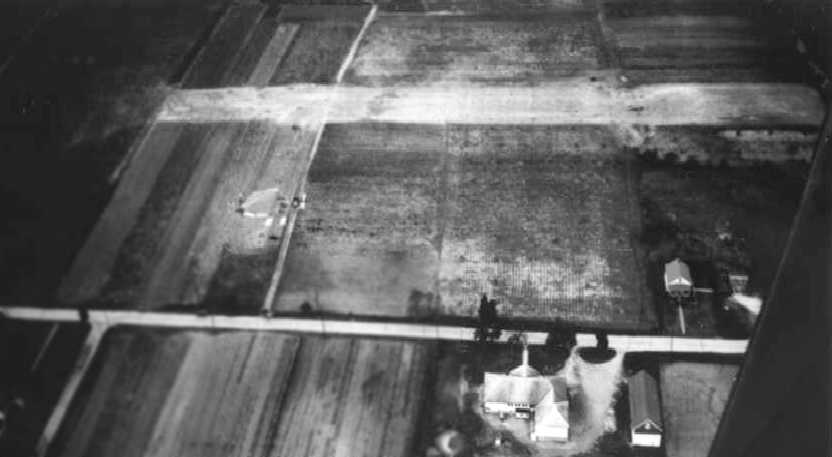 Two small buildings (hangars?) were depicted along the road on the east side of the field.