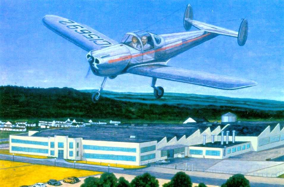A 1965 aerial photo showed the Erco factory & 2 paved runways, but there were no aircraft visible on the field, and the factory employee parking lot was empty.
