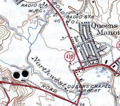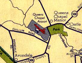 A 1938 aerial photo of Queen's Chapel Airport showed the field to consist of an open grass area,