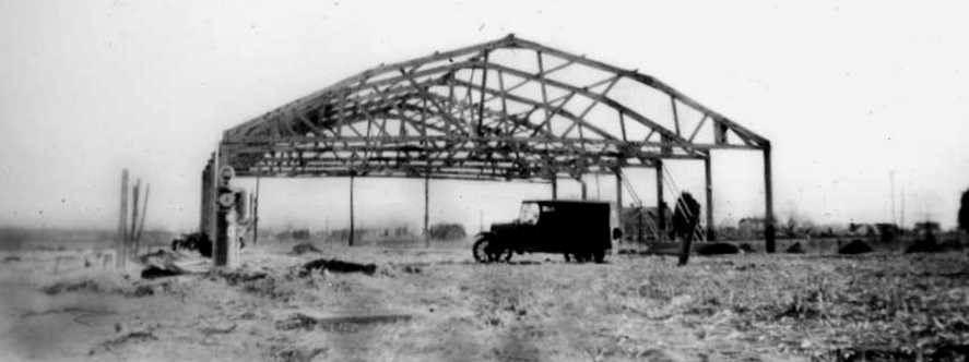 A circa 1937-38 photo of a hangar under construction at Skyhaven Airport.