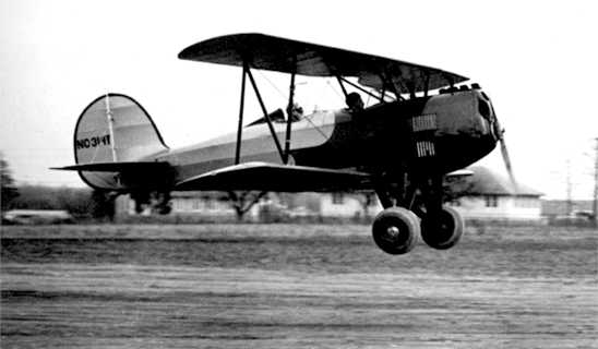 A 1939 photo of an unidentified biplane landing at Skyhaven Airport.