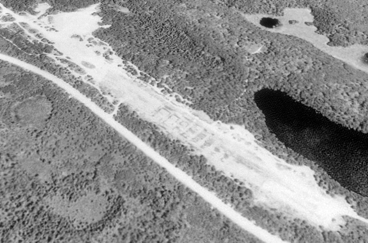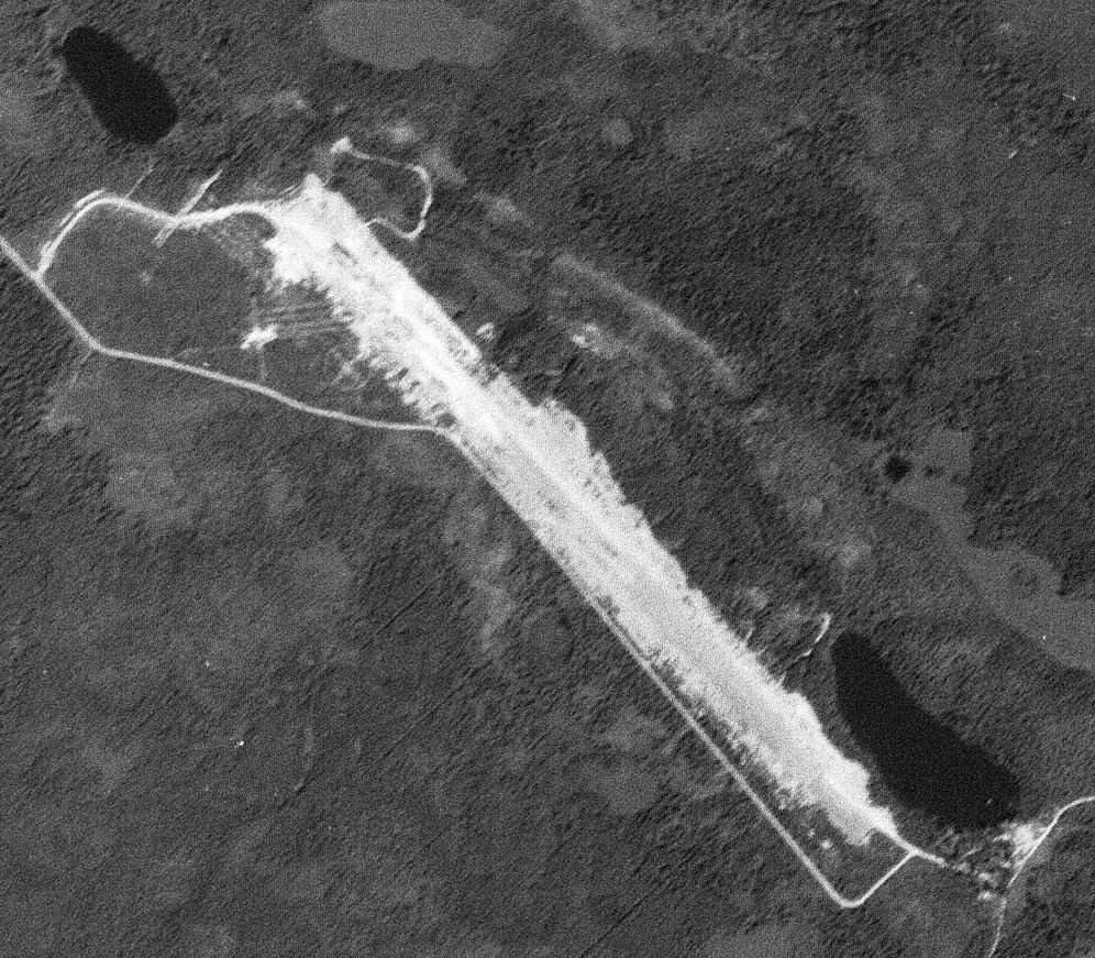 It depicted an unpaved northwest/southeast runway, with some unidentified features on the northwest side, possibly relating to its use as a bombing/strafing range.