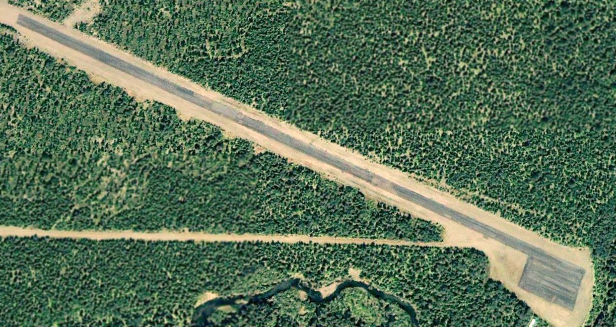The airstrip was where planes were loaded with pesticides to spray (crop dust) the forests & kill the budworms.”