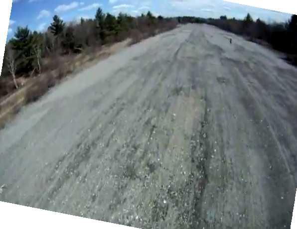 A still from a 4/26/12 video by Brian Barainca taken from his radio-controlled model aircraft, on short final to the runway at Milford.