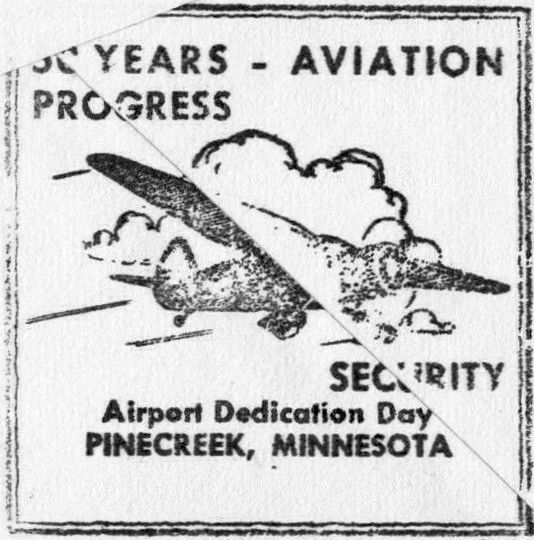 A 1979 postmark (courtesy of David Ross) commemorating “50 Years - Aviation Progress”, the Pinecreek Airport Dedication Day.