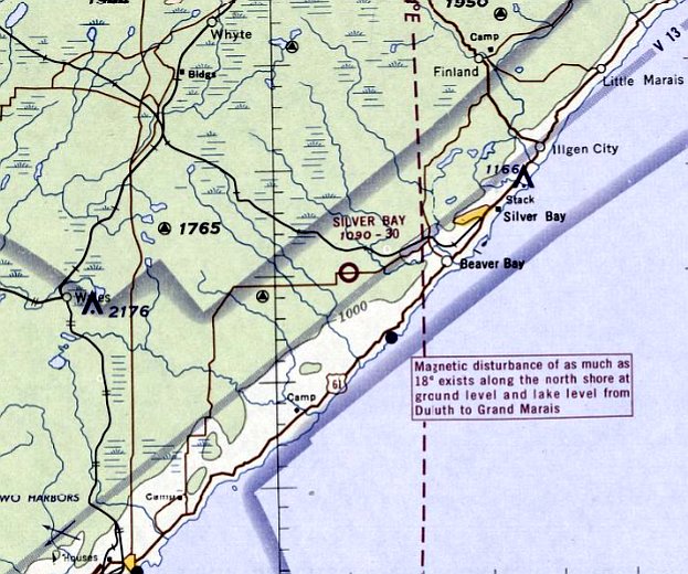 The earliest depiction which has been located of Silver Bay Airport was on the July 1965 Duluth Sectional Chart.