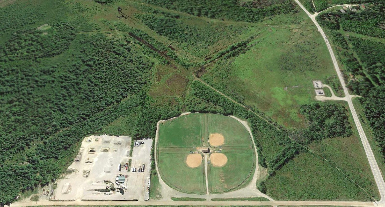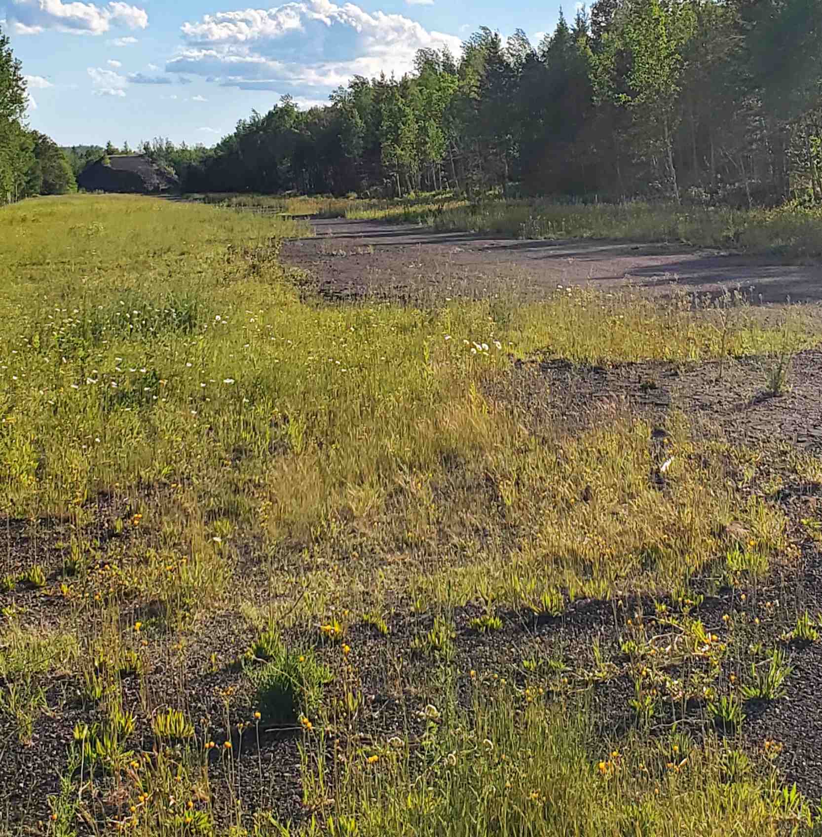 A 6/30/22 photo by Kyle Nobes looking southwest along the remains of the Tofte Airport paved runway, toward “A big pile of gravel owned by City of Tofte.