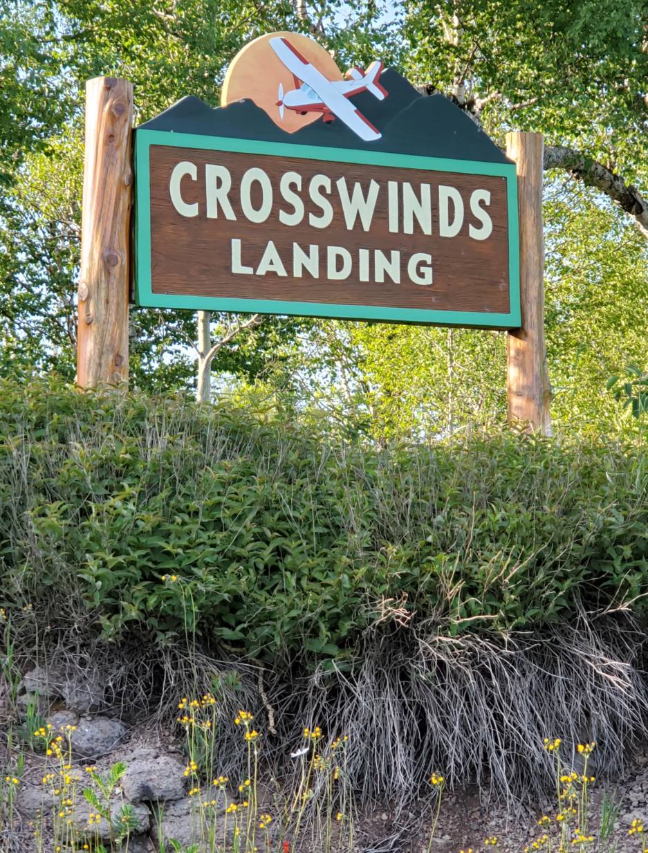 A 6/30/22 photo by Kyle Nobes of the “Crosswinds Landing” sign at Tofte Airport, presumably the name of the planned fly-in community.