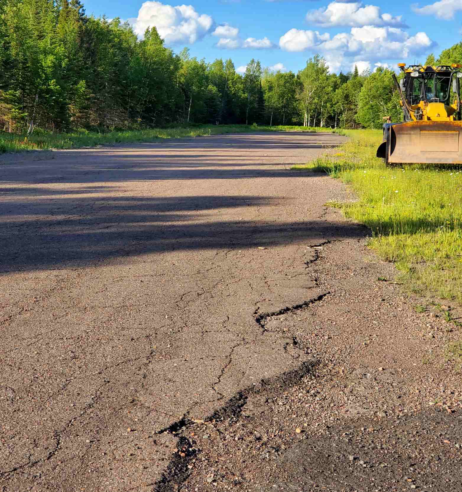 A 6/30/22 photo by Kyle Nobes of “a grader sitting on the northeast end” of the remains of the Tofte Airport runway.