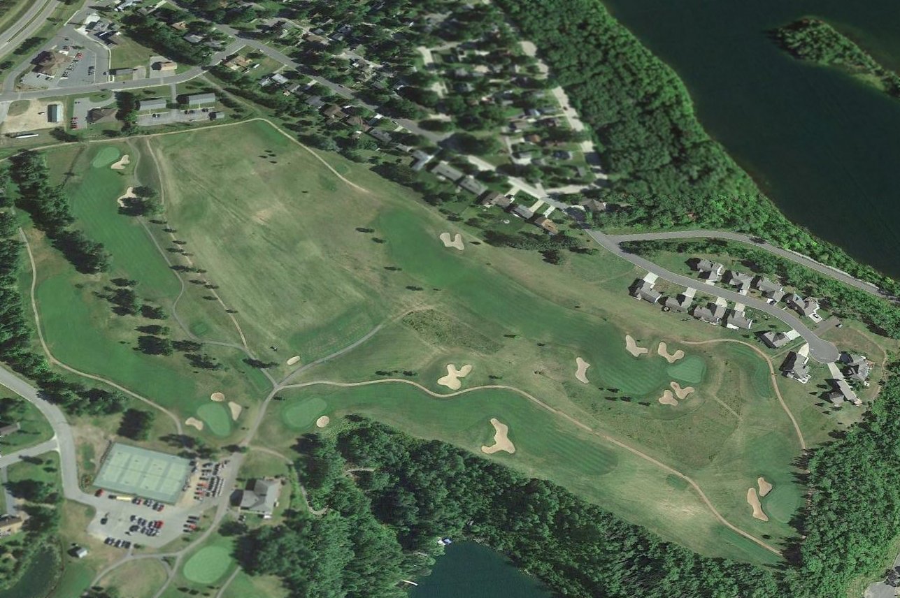 A 2013 aerial view looking northwest showed the Devil's Track Airport runway remained intact, but all of the hangars except one had been removed at some point between 2003-2013.