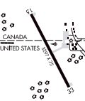It depicted a single unpaved northwest/southeast runway, which extended in the U.S. (but not yet over) the Canadian border.