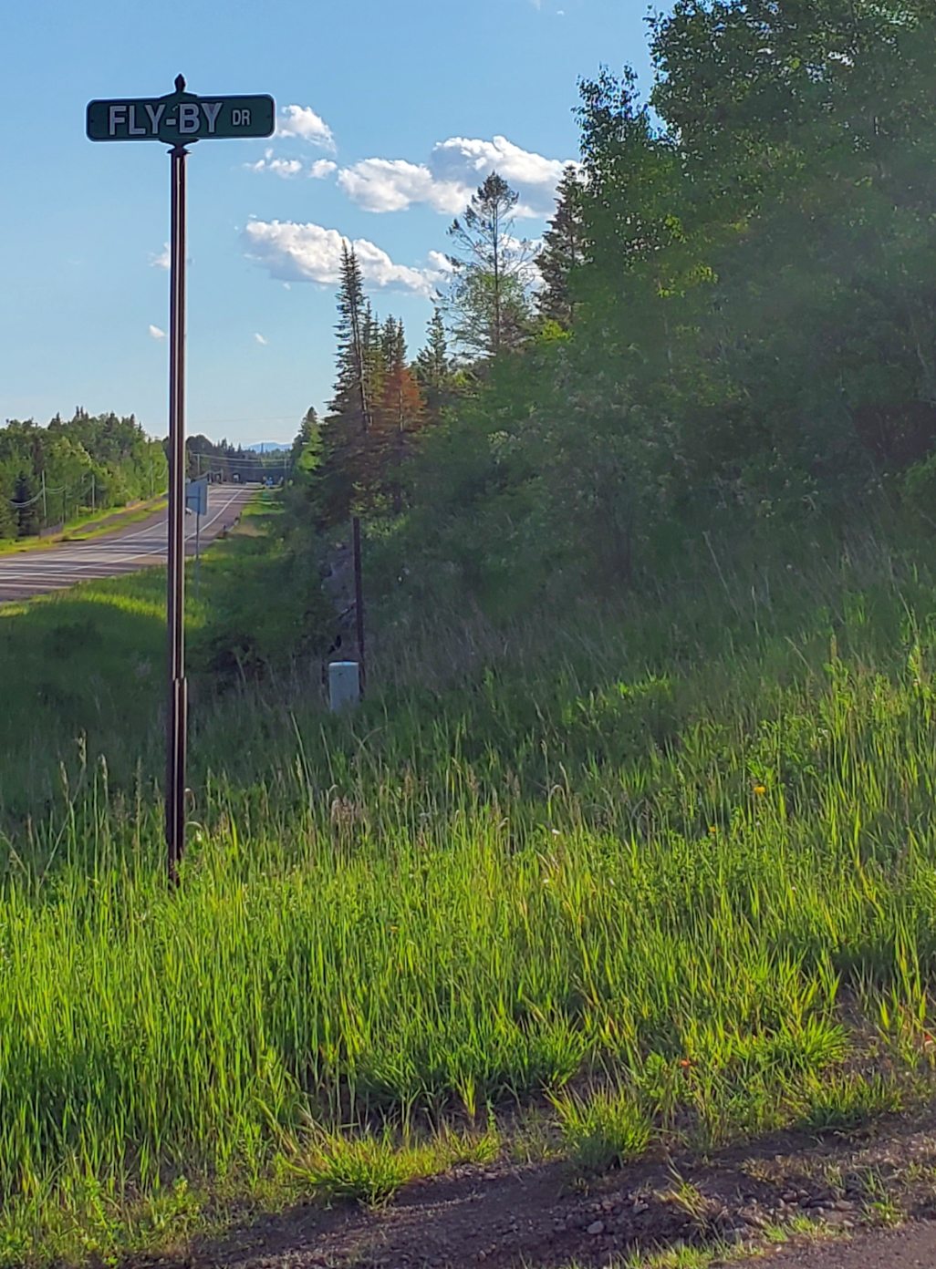 A 6/30/22 photo by Kyle Nobes of the street sign at the southern entrance to Tofte Airport, Fly-By Drive.