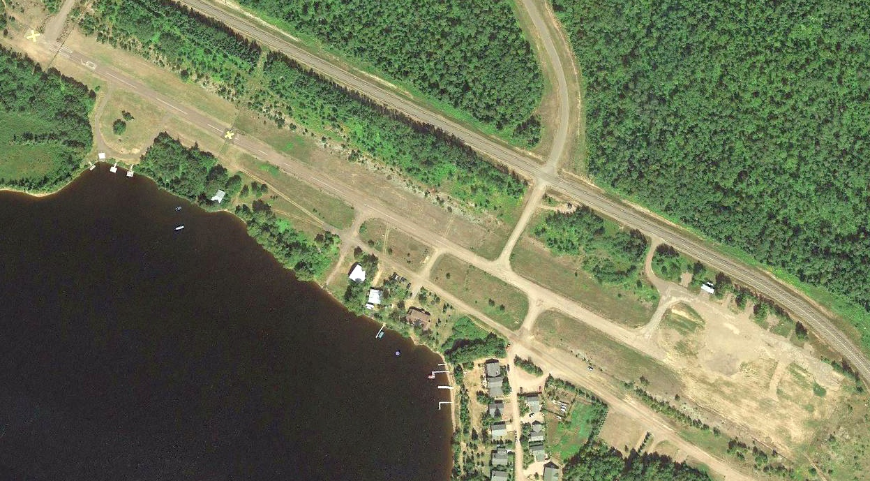 This small general aviation airport was located on the shore of Devil's Track Lake a few miles south of the Canadian Border.