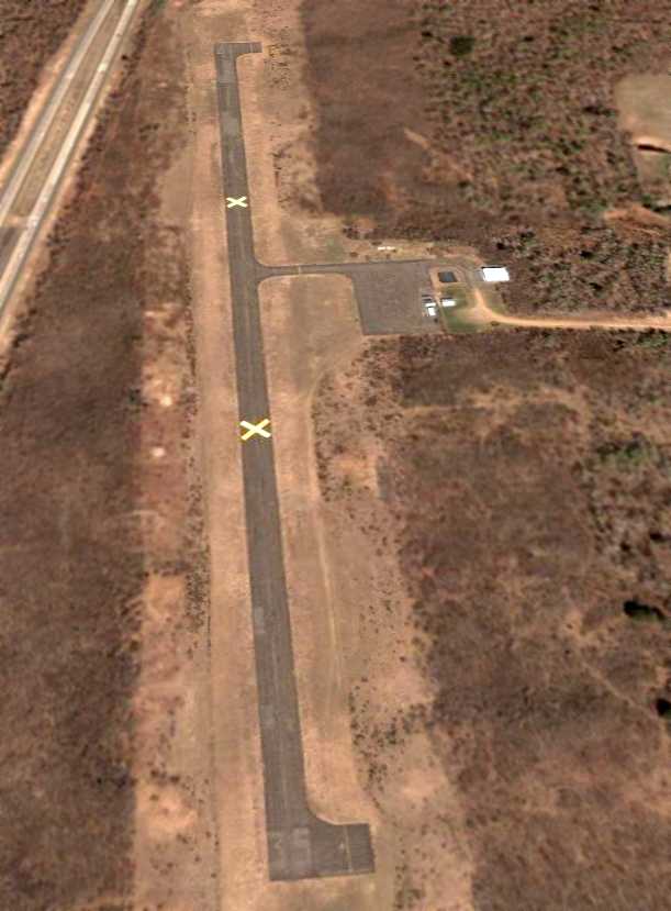 A 4/24/05 aerial view looking north along the Sandstone runway shows this fine little general aviation facility appears to remain completely intact –