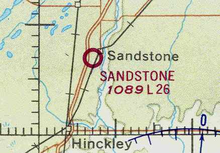 It depicted Sandstone as having an unpaved northwest/southeast runway, with no buildings or aircraft visible.