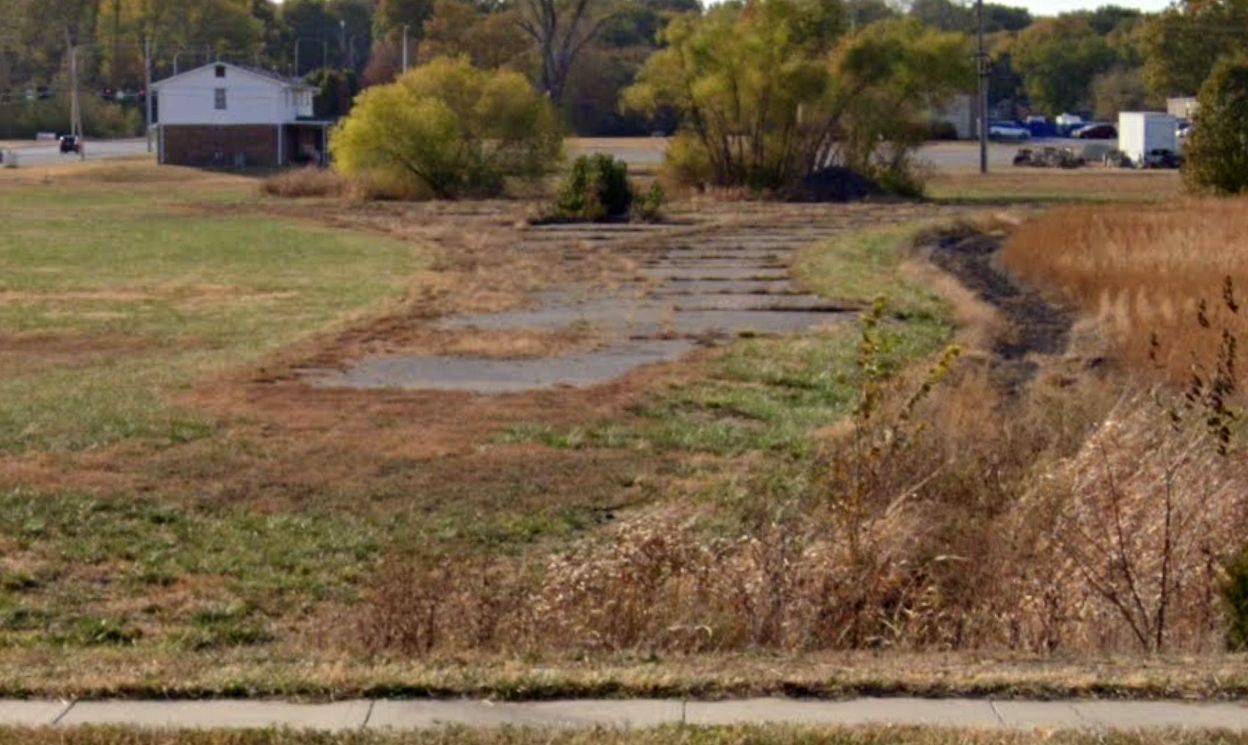 A 2022 photo looking west at the remains of the Independence Memorial Airport taxiway pavement.