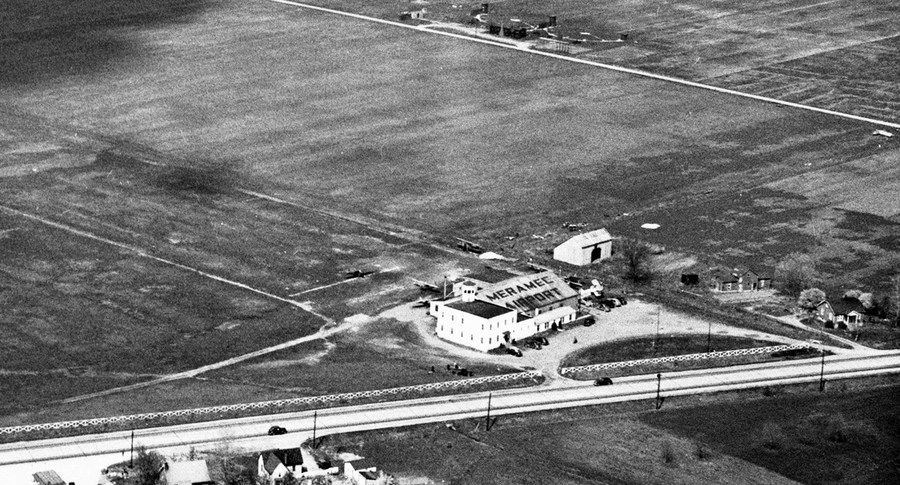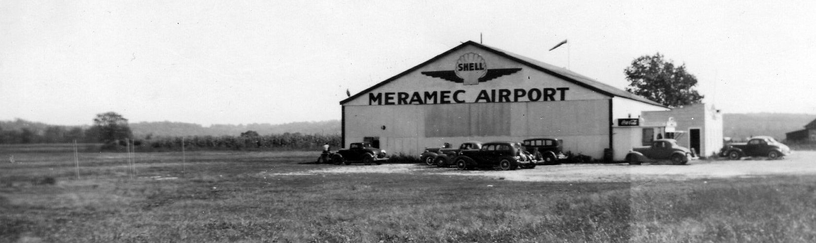 The earliest photo which has been located of Meramec Airport was a circa 1930s photo showing a hangar labeled “Meramec Airport”.