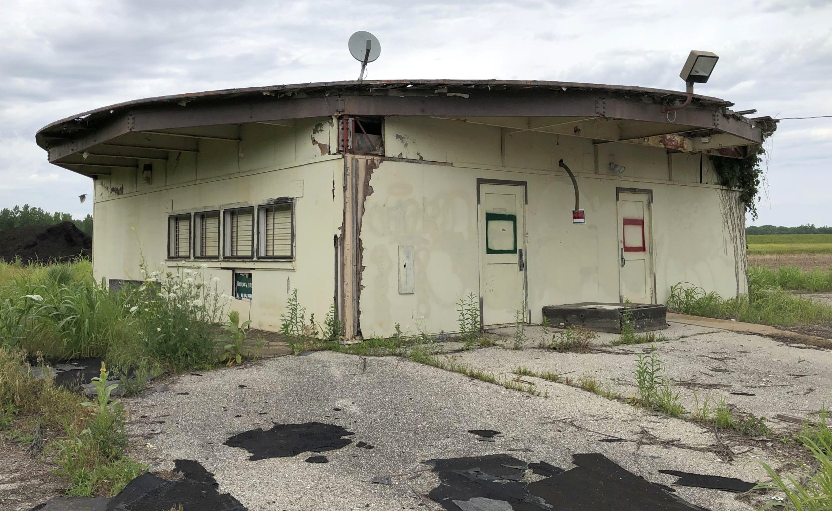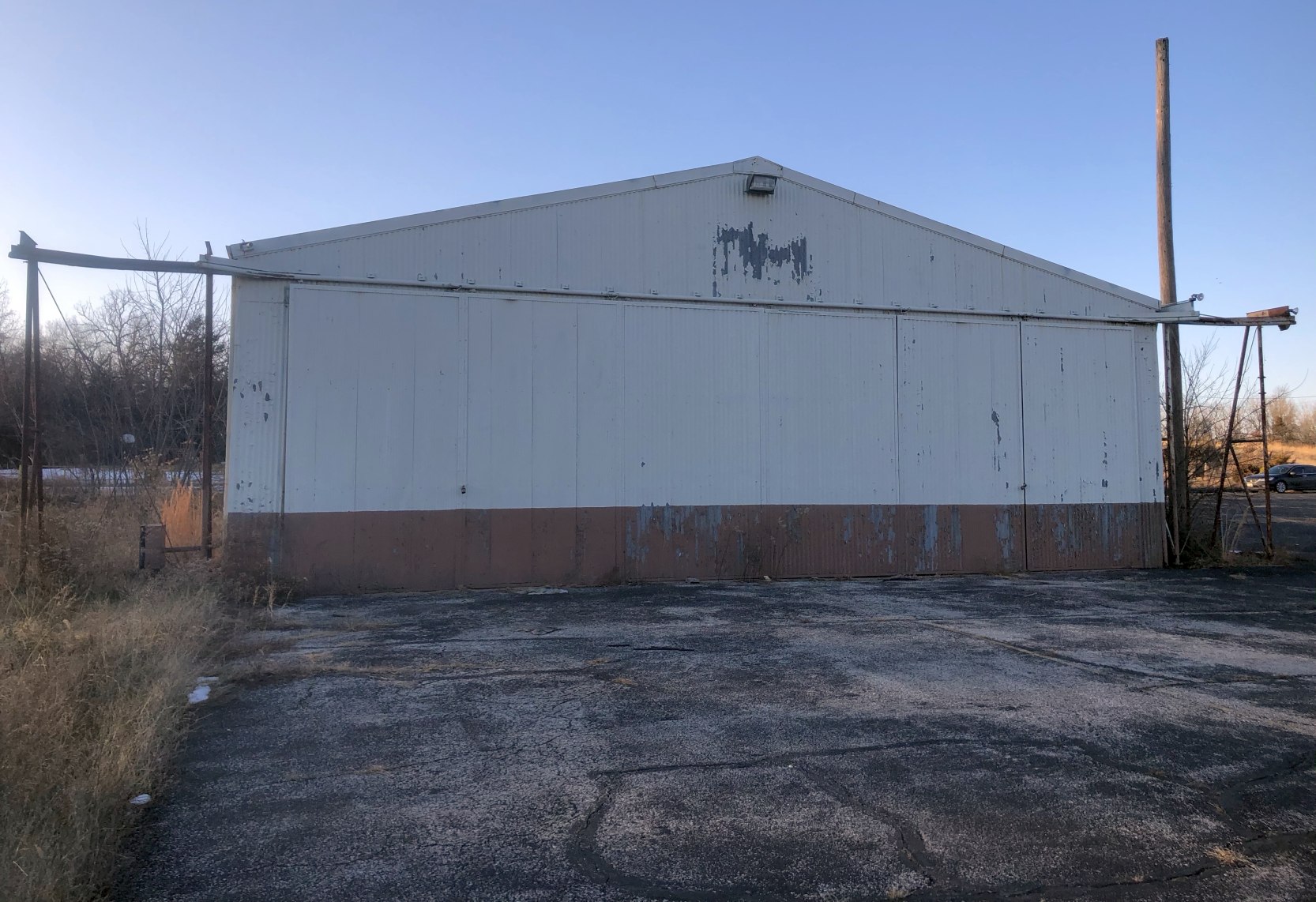 At some point since the 1930s a 2-story airport office building had been added next to the hangar, with a control tower on top.