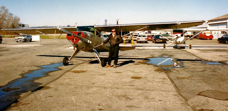 A 1992 photo of Paul Schlipp in front of his Cessna 150 at Weiss Airport.