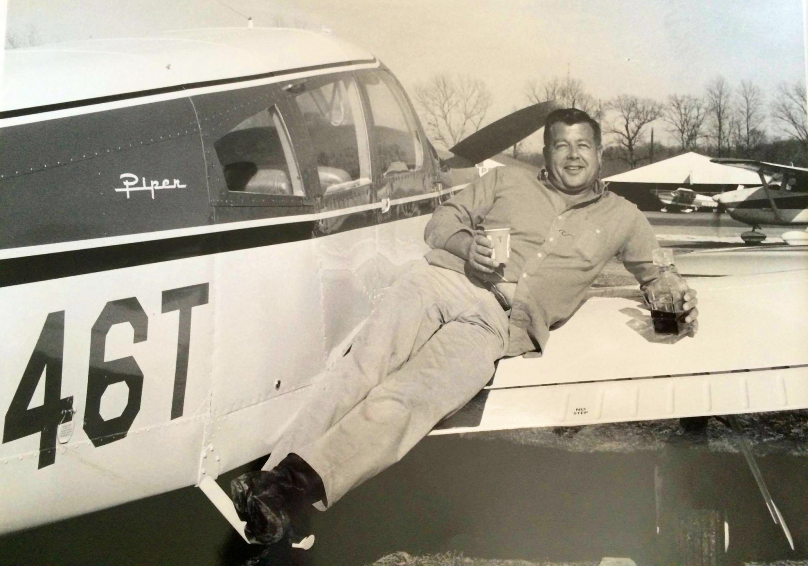 A 1969 photo of Pat Locke enjoying a beverage on a Piper at Weiss Airport (courtesy of Jim Naumann).