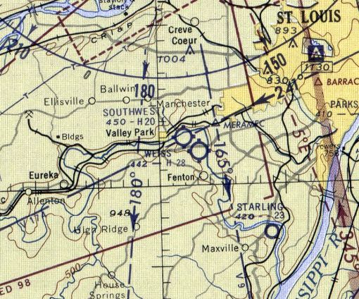 This was one of 3 small general aviation airports which were clustered in close proximity to each other, the other two being Meramec & Weiss Airports.
