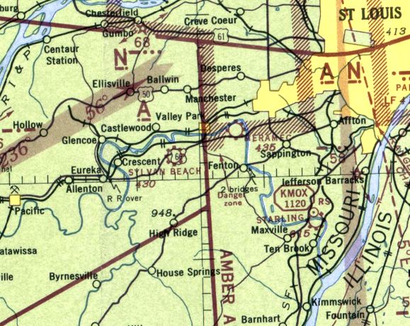 annotated to show the proximity of Sylvan Beach Airport, Meramec Airport, and the eventual Weiss Airport.
