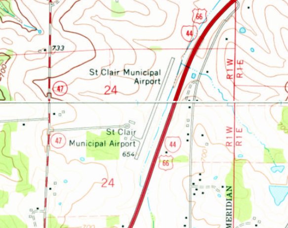 The last depiction which has been located of the original St Clair Municipal Airport was on the June 1960 Kansas City Sectional Chart.