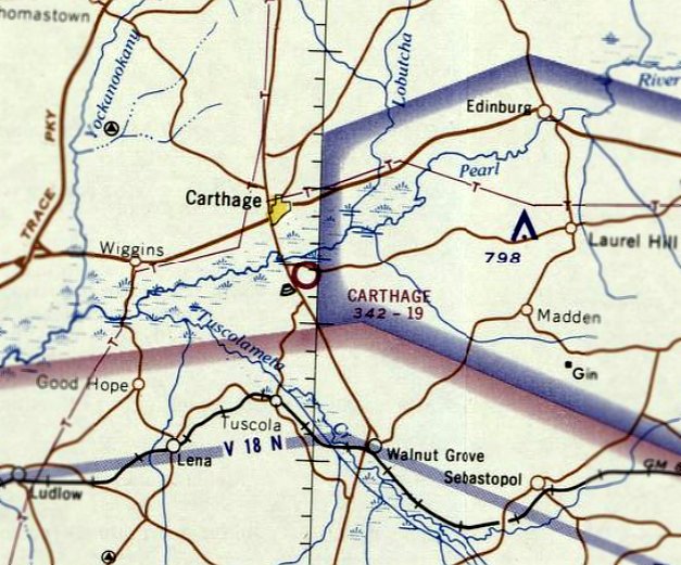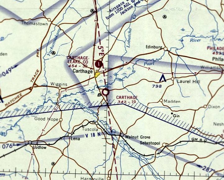 The last aeronautical chart depiction which has been located of the original Carthage Airport was on the September 1968 Birmingham Sectional Chart.