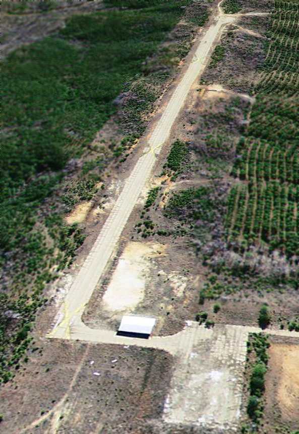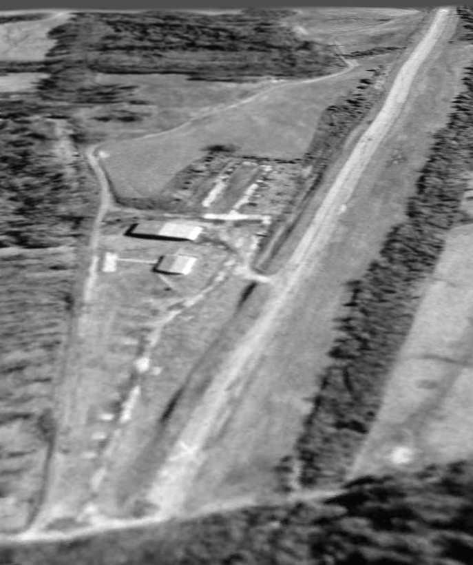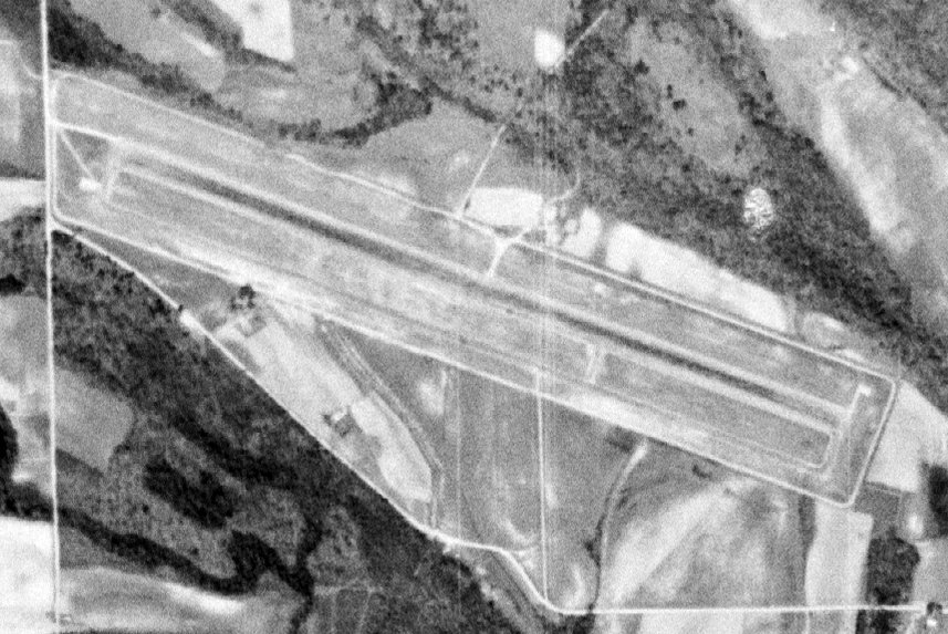 A 1980 aerial view showed the Carthage Airport runway was still intact, but overgrown, and there was no indication of recent aviation use.