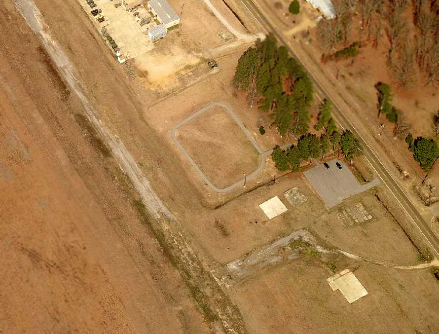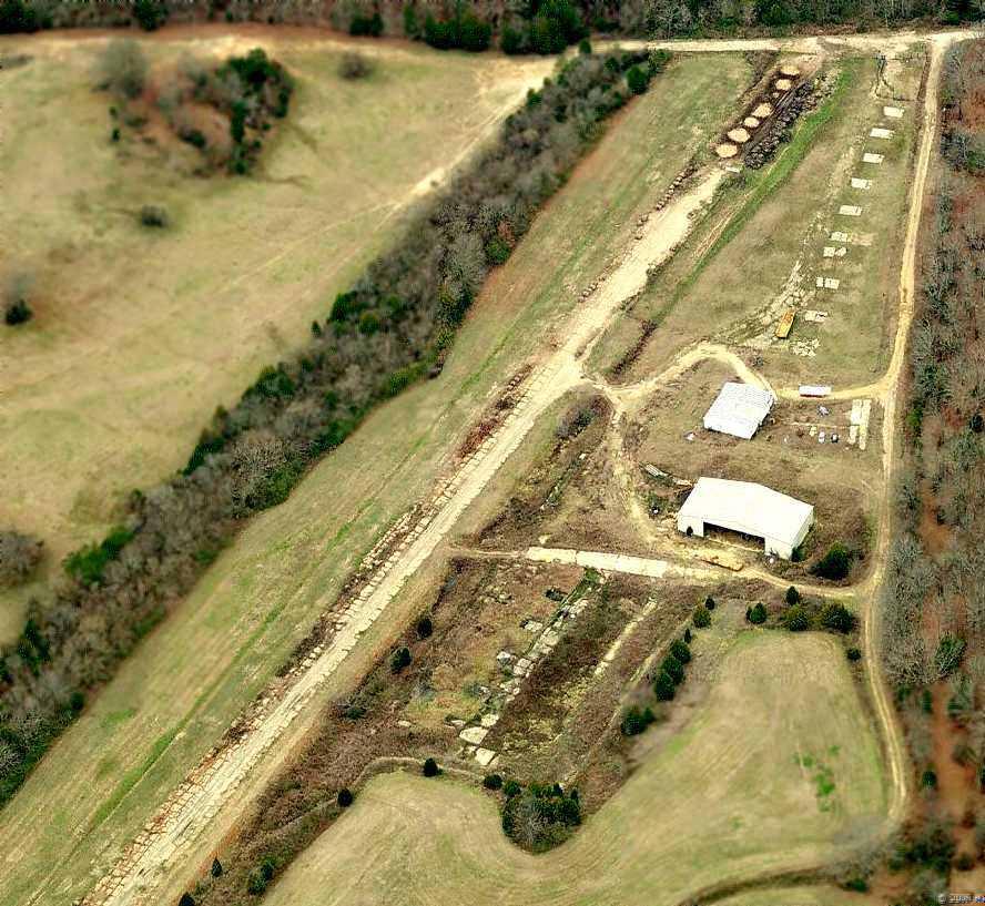 A circa 2006 aerial view looking west at the remains of the Tupelo Industrial Airpark showed the runway pavement in a significantly deteriorated state.