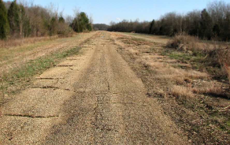 A January 2009 photo by Matt Nichols looking southeast along the remains of the Tupelo Industrial Airpark runway.