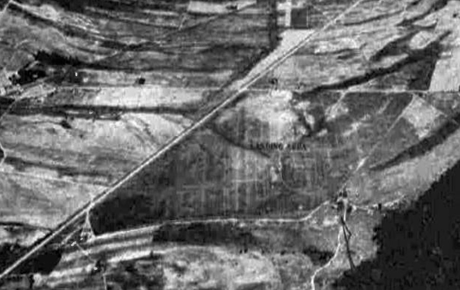 The earliest photo which has been located of Sanders Field was an undated aerial view from the 1945 Army Air Field Directory (courtesy of Scott Murdoch).
